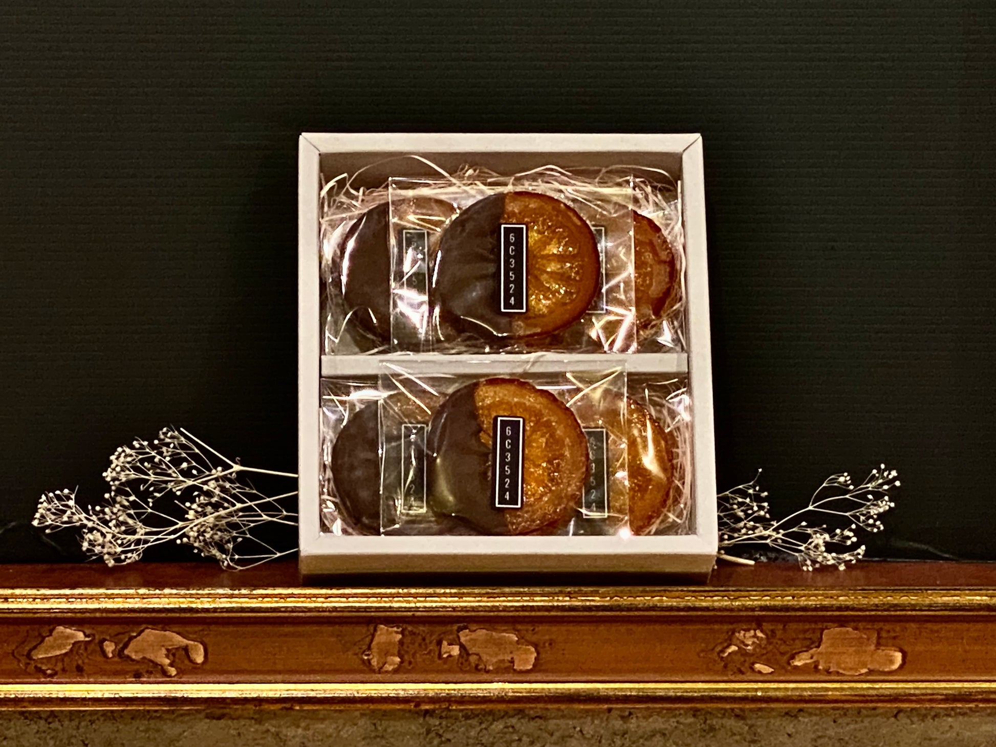 原材料:オレンジ、ダークチョコレート(カカオニブ、きび砂糖)グルコースシロップ(小麦を含む)、砂糖